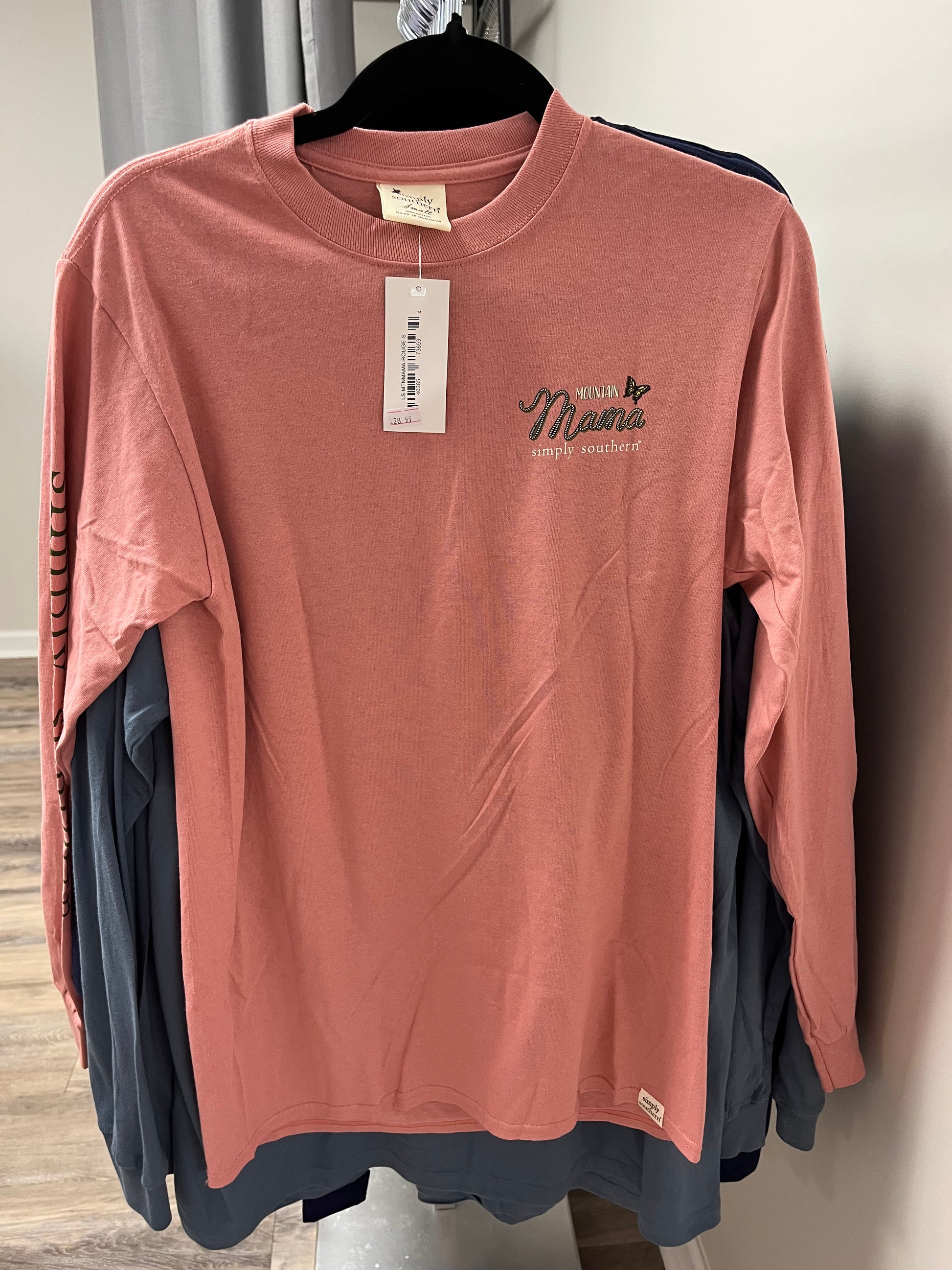 This long sleeve shirt from Simply Southern proudly displays "Mountain Mama" for a touch of rustic style. Made with high-quality materials, it offers lasting comfort and durability. Perfect for outdoor adventures or a casual day out. Show off your love for the mountains with this must-have piece.