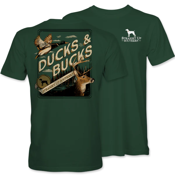 This youth shirt from Straight Up Southern showcases a fun "ducks and bucks" design on its short sleeves. With its playful design and comfortable fit, this shirt is perfect for young outdoors enthusiasts. Made from quality materials and featuring expert craftsmanship, it's a must-have for any young fan of the great outdoors.